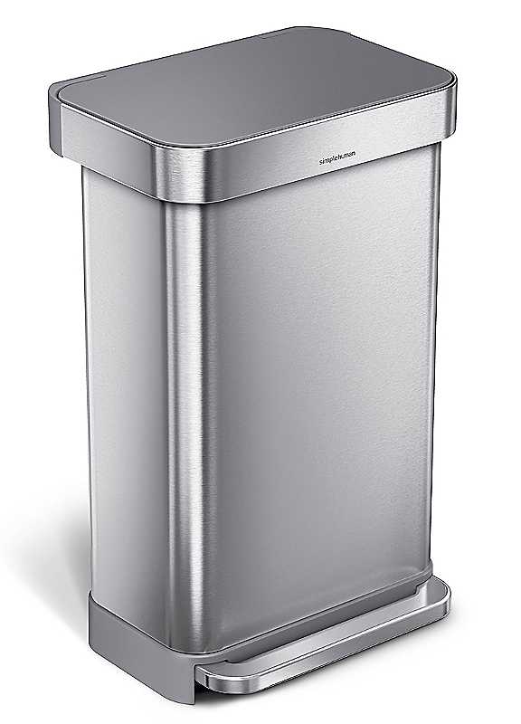 simplehuman 45L Rectangular Pedal Bin Brushed Stainless Steel with Grey Plastic Lid