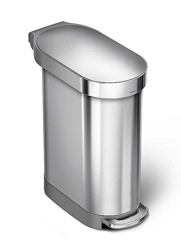 Space-efficient shape fits perfectly in tight spots, like between cabinets. Liner rim lifts up for easy access to the liner, then closes to grip and keep it neatly out of sight. The strong steel pedal is built to last, and lid shox technology ensures a smooth, silent close every time. Simplehuman Code N custom fit bin liners fit this bin perfectly.Capacity: 45 LitreSlim, space-saving shape: Designed to make the most of tight spacesStreamlining the task: Unique liner rim system is faster & neater. The outer lid lifts up for easy access to the liner - no need to remove the top of the bin or fumble with a clumsy bucket. When you're done, it closes over the liner to keep it neatly out of sightI'm the strong, silent type: The strong steel pedal is engineered to last over 150,000 steps - that's more than 20 steps a day for 20 years - & Simplehuman's patented lid shox technology controls the motion of the lid for a slow, silent closeLook no bucket: The liner rim holds the liner in place, so there is no longer a need for an inner bucket Old-fashioned buckets are clumsy, awkward & a big waste of space inside the bin - now there's 25% more room for rubbish! The interior is designed for easy cleaning with rounded corners & smooth wipeable surfacesCleaner stainless steel: Invisible silver-ion coating resists fingerprints & the spread of germs without dulling the natural sheen & lustre of the steel (brushed model only)Optional compost caddy: Add Simplehuman's compost caddy (sold separately, optional) to your waste-sorting routine - it conveniently docks on the side of this bin, encouraging you to separate organic from general waste & making waste management even more efficientCustom fit liners: Simplehuman's code N liners are designed to fit this bin perfectly so they don't slip, & they stay completely hidden Extra-thick plastic & double-seam construction prevent rips & tearsDimensions approx. 61.98 x 25.91 x 54.61 cm