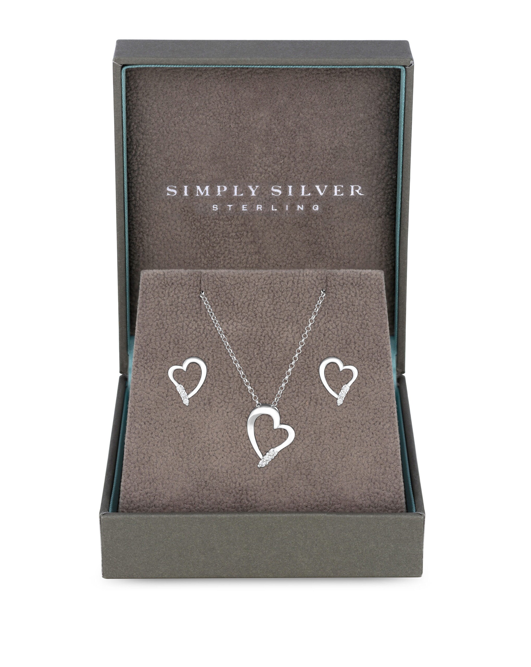Simply Silver Sterling Silver 925 Cubic Zirconia Heart Pendant Set - Gift Boxed