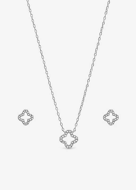 Simply Silver Sterling Silver 925 Cubic Zirconia Pave Open Clover Set - Gift Box - Size ONE SIZE