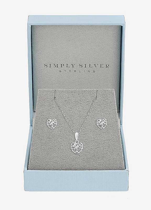 Simply Silver Sterling Silver 925 Polished Tree of Love Set - Gift Boxed - Size ONE SIZE