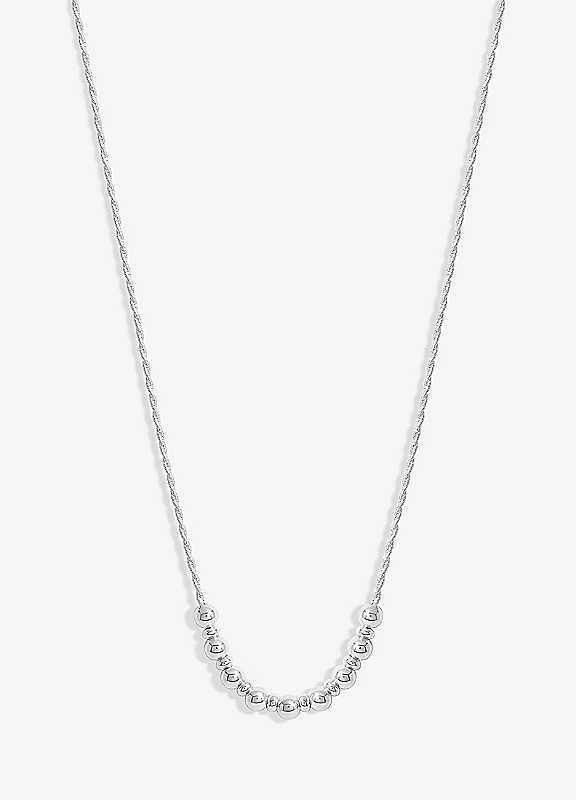 Our iconic Simply Silver collection boasts fine, contemporary and meaningful 925 Sterling Silver jewellery. Enhance your style with the Rope Textured Ball Necklace, featuring intricate rope-textured ball accents for a modern yet timeless look. This versatile piece adds depth and sophistication to any outfit. Fastening: Lobster Clasp Comes in Gift Pouch Material: Sterling Silver 925 Width dimension approx. 5 mm Length dimension approx. 460 mm | silver ball necklace, dainty silver necklace, classic necklace, single strand necklaces, simple silver necklace, silver rope chain, lobster clasp necklace, sterling silver necklace, casual necklace