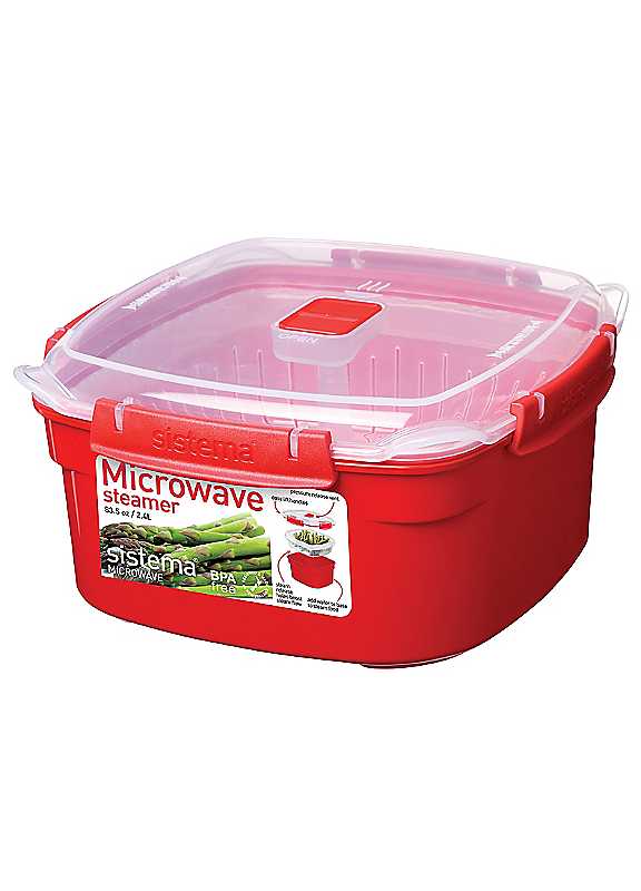 Get steaming with the Sistema microwave steamer bowl. Anew, handy addition to the Sistema microwave range, helping you to steam easily in the comfort of your home. The microwave steamer comes with 3 position lids that you can click to allow a certain amount of steam to generate to cook your food. The microwave steamer is ideal for heating, storing and cooking for all your food needs.Dishwasher & microwave safeMade from BPA free & phthalate free plasticPlastic