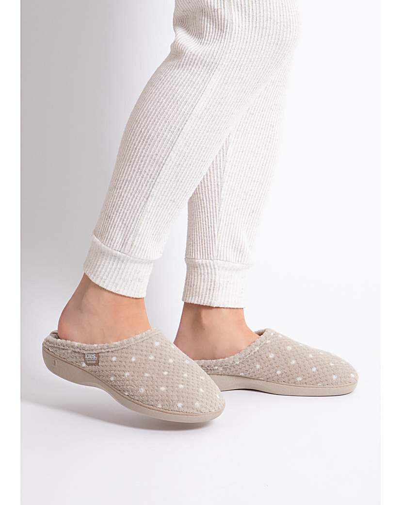 Size 8 - Natural Spotty Totes Ladies Popcorn Terry Mule Slippers