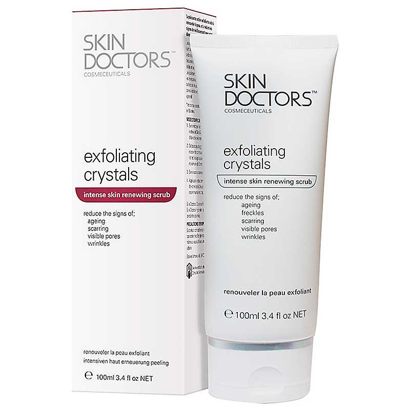 Remove dead, dull and lifeless skin with the deep scrubbing action of the technologically advanced intensive crystals. Exfoliating Crystals contain microencapsulated beads for all the benefits of a powerful exfoliation without harsh scratching or damage to your skin. You will see visible improvement in the quality of skin texture from the very first application. Gently removes the top layer of dead skin cells to reveal fresh new skin. Helps reduce the appearance of acne scarring and other blemishes Improves skin's texture and tone. Directions for use: 1. Cleanse face thoroughly and pat dry. 2. Dot the Exfoliating Crystals on the parts of the face or body to be treated. 3. Using Micro-dermabrasion Accelerator Unit or exfoliating gloves, and using circular, massage the crystals into the treatment areas for up to 5 minutes per area. 4. Dust the crystals off the treatment area with a dry towel or flannel cloth. 5. Rinse area thoroughly and pat dry. 6. Apply Gamma Hydroxy and then a moisturiser. 7. Use 1 to 2 times a week to maintain glowing results!. Brand: Skin Doctors 100ml | remove dead skin from face, face scrubs exfoliators, exfoliators for body, face brightening products, skincare for uneven skin texture, skincare clear skin, exfoliator for face, exfoliating products, dry flaking skin on face, face care products, skincare for aging skin, skin treatment, skincare for glowing skin, skin care exfoliators, exfoliating cleanser, skin texture treatment