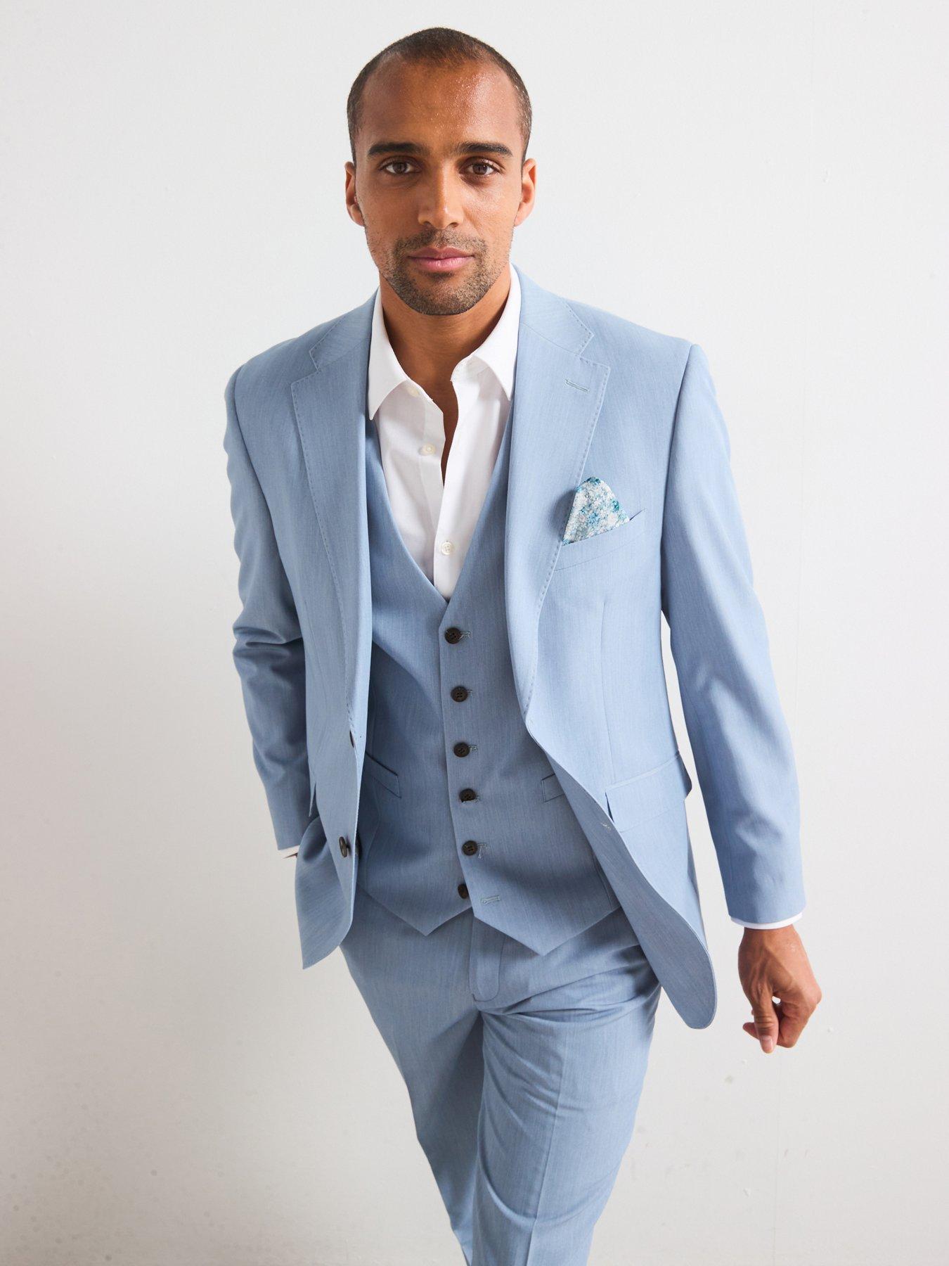 Skopes Beckett Standard Fit Waistcoat Size & Fit True to size - order your usual size Standard fit Available in sizes 36 - 52 Details Beckett Standard Fit Waistcoat by Skopes Light Blue Single-breasted 6 button fastening Welt pockets Floral patterned inner lining plain outer back lining Adjustable strap to the back Matching trousers available separately, search WFP9S Matching jacket available separately, search WFP9R Material & Care Material Content: 76% Polyeser 19% Viscose 5% Elastane Washing Instructions: Dry Clean Only