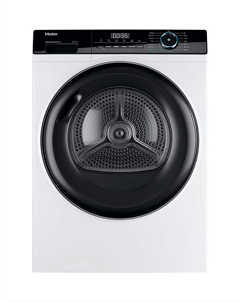 This product includes our Installation & Recycling service. The Haier Hd90-A2939 I-Pro Series 3 Tumble Dryer combines innovation with efficiency, making it an excellent choice for modern households. Its freestanding design and 9 kg capacity cater perfectly to larger laundry needs. The advanced Heat Pump Technology ensures energy-efficient drying, earning it an impressive A++ energy efficiency classification. Benefit from the Hygienic Program, which eliminates over 99% of bacteria for safe and clean laundry. The 3 in 1 Filter simplifies maintenance by collecting lint and fibres efficiently in one place. Utilise the I-Time Function for customizable drying cycles that fit your schedule, while the Start Delay feature offers flexibility with a delay option of up to 12 hours. This sleek white appliance is designed to integrate seamlessly into any home environment. Type: Freestanding Heat Pump Tumble Dryer, Capacity: 9 Kg, Technology: Heat Pump, Energy Efficiency Class: A++, Additional Features: Hygienic Program, 3 in 1 Filter, I-Time Function, Start Delay.