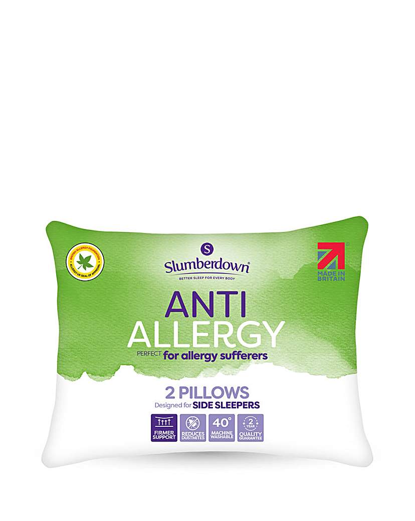 The pillows in this Slumberdown Firm Support Side Sleeper Anti Allergy Pillow 2 pack are specifically made with an anti allergy filling to help reduce the build-up of dust mites, bacteria and fungus. Tested and approved by leading experts at Allergy UK, they're an ideal choice for allergy sufferers and all year-round use. Our lovely and snuggly hollowfibre filling is soft and comfortable, and the luxury microfibre cover feels wonderful to sink into. For those who prefer to sleep on their side, our firmer support pillow allows the right level of comfort and support for your head and neck, whilst keeping your spine straight, so you can enjoy a comfortable night's sleep.