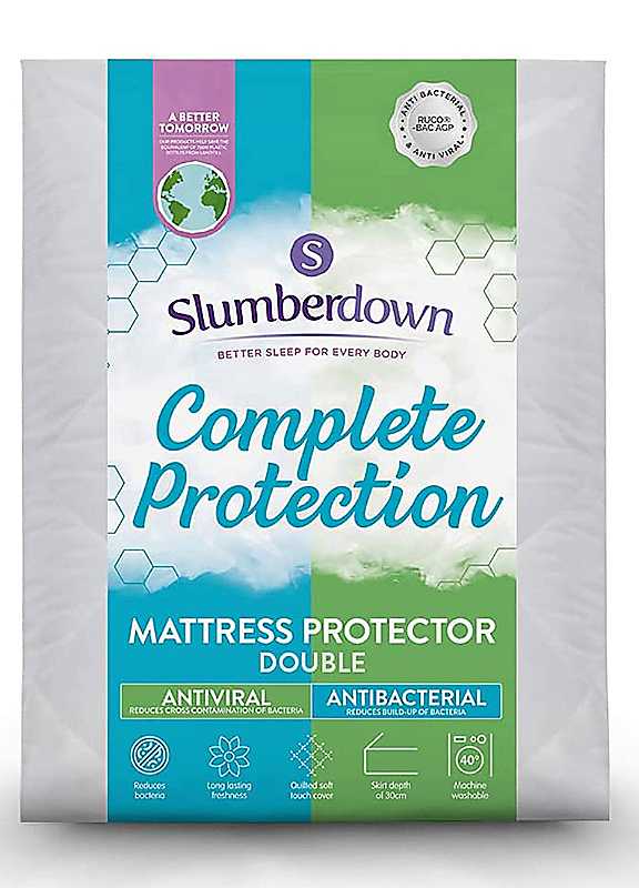 This Slumberdown complete protection antiviral mattress protector has been specifically made with an innovative fast-acting antibacterial and antiviral treatment. Developed and independently tested by the experts at the Rudolf Group, this clever mattress protector helps to reduce the build-up and cross-contamination of bacteria and enveloped-virus, so that you can enjoy long-lasting freshness and a healthy sleep space.RUCO®-BAC AGP is proven to reduce tested viruses in the coronaviradae family by 99%, even after numerous washes, as per the international standard ISO18184:2019. Registered microstructures within the fabric of the mattress protector transport silver ions that stop growth and cross-contamination of bacteria and virus on any textile.The comfortable soft touch microfibre cover feels wonderfully cosy, and as well as providing protection against bacteria and enveloped virus, this complete protection mattress protector from Slumberdown also helps to prolong the life of your single mattress and protect it from sweat, makeup, and any other stains or spills. Slumberdown Mattress Protector Features: Machine wash at 40°C 100% Microfibre