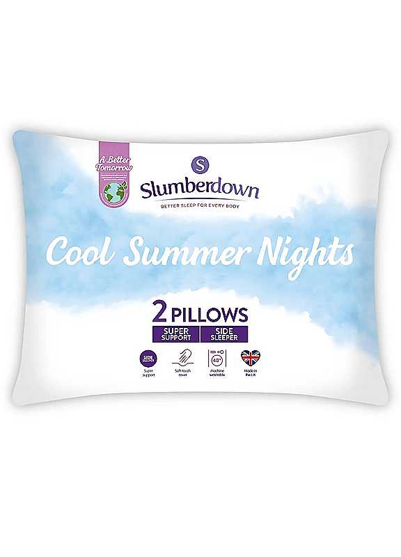 These Cool Summer Nights super support pillows are ideal if you sleep on your side. The soft filling gently supports and aligns your head, neck and spine as you rest. So you can move freely, keep comfortable and enjoy a great night's sleep all night long.Keeps You CoolFirm SupportMachine washableCover: 100% Microfibre, Filling: 100% Hollowfibre