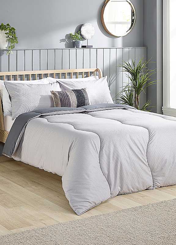 No more fighting with the duvet cover sounds good, right?! That's where this Slumberdown coverless comfort duvet comes in. It's the stylish, comfortable and convenient duvet you never knew you needed. With a reversible embossed cover, you can customise your bed's look whilst streamlining your bed-making routine, because let's face it: putting duvet covers on is nobody's idea of fun. And don't worry about your Coverless Comfort duvet clashing with the rest of your bedding, because as well as coming in different finishes and colour options, it also comes with matching pillowcases to complete your bed. Made with its own super soft, sewn on cover, you can simply take the coverless comfort duvet out of its re-usable bag and throw it on the bed - making it ideal for guests, travelling, and those who struggle with traditional duvet covers. Filled with fluffy hollowfibre and crafted with soft touch covers, both the duvet and matching pillowcases are designed for cosy comfort all year round. Being a mid-weight 10.5 tog duvet, it's the perfect option for use whatever the season. The coverless comfort duvet from Slumberdown can easily be cleaned in your washing machine at home, making it more hygienic than washing duvet covers alone. Plus, it's quick drying - either hang it outside to line-dry in summer or tumble dry on a low heat in winter; it can be refreshed and back on the bed in a matter of hours. 10.5 Tog Machine washable Tumble dry/Line dry Cover & Filling: 100% Polyester