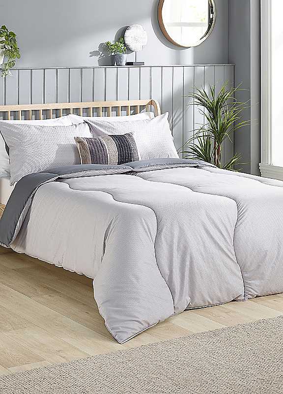 Our Coverless Comfort duvets come hassle free, with a gorgeously soft sewn cover and generously filled with cosy hollow-fibres, perfect for surprise sleep overs and relaxing duvet days. Whatever your style, Coverless Comfort comes in a range of different finishes and colour options, and also includes matching pillow cases to complete the look. Coverless Comfort is even machine washable and quick drying, so spills and accidents don't cause sleepless nights.Tumble DryDo not iron4.5 TogReversibleMachine Washable100% Microfibre. Filling: 100% Hollowfibre.