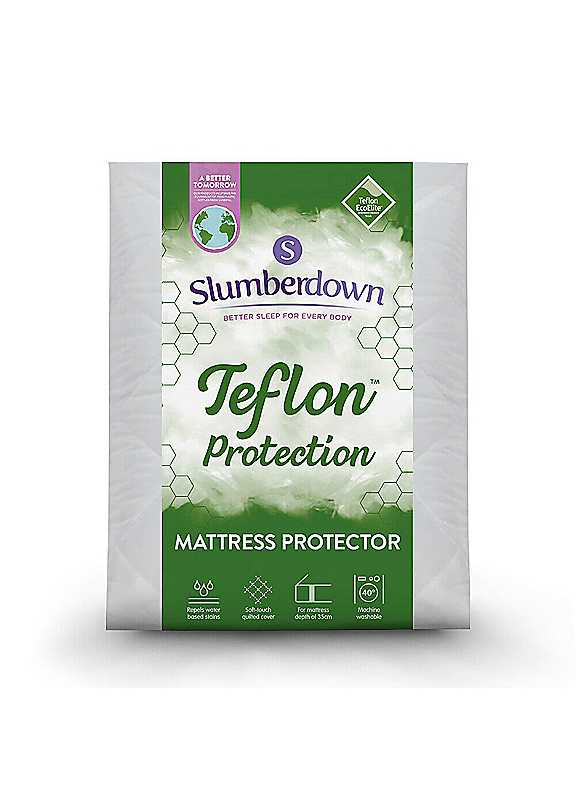 This Slumberdown Teflon mattress protector has been specially treated with Teflon technology to provide an extra layer of protection to your single mattress. Designed to shield your mattress from spills, splashes and stains, this Teflon mattress protector acts as a hygienic layer that can be easily cleaned to create a healthier sleeping environment.The comfortably quilted soft touch microfibre cover feels wonderful to sleep on, and as well as providing protection against everyday stains like sweat and makeup, this single Teflon Protection mattress protector also helps to prolong the life of your mattress, to keep it looking and feeling like new for longer. With elasticated straps, it's easy to attach to your single mattress and will stay securely in place until you need to remove the protector and pop it in the washing machine to keep it fresh and clean. Slumberdown Mattress Protector Features: Machine wash at 40°C 100% Microfibre