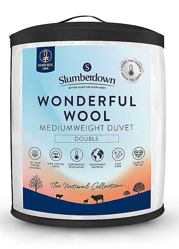 This Slumberdown Wonderful Wool Duvet is filled with 100% British wool. Wool fibres act like a spring, meaning they can continuously resist pressure and flattening and still bounce back, which makes wool a perfect filling for duvets. Wool fibre is incredibly complex and made up of lots of different layers which create pockets that trap air and help to circulate heat, enhancing insulation and warmth. It absorbs the sweat we produce during the night, then releases it when the atmosphere is dry, keeping skin dry and comfortable. As well as this, wool breathes naturally and constantly adjusts to external conditions, which helps to regulate temperature and ensure comfort. All these characteristics make this single Wonderful Wool duvet from Slumberdown a great choice for all seasons. To enhance the effects of this impressive filling, the Wonderful Wool single duvet has a 100% cotton cover. Also naturally breathable, the cotton ensures that the benefits of the wool filling are not lost - working harmoniously together to deliver an optimum sleep environment for you all year round. Breathable Thermo-regulating Sustainable Hypoallergic Spot clean only Air dry Cover: 100% Cotton Filling: 100% British Wool