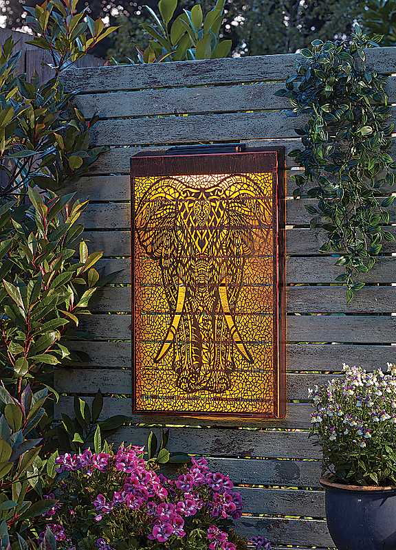 Celebrate strength and serenity with our Elephant Wall Art! Intricately detailed elephant design with warm LED solar back-lighting. Create a focal point on walls, entrances, balconies, fences, driveways and out-buildings.Easy to install: charges by day, shines by night - no wires or electricity needed!Weight approx. 0.55 kgManufacturer's 1 year guaranteeSolar: YesMains power: NoBattery includedBattery size: 1 x AAA Ni-MH RechargeableReady assemblyWipe clean only, Avoid household cleaners & abrasives80% Iron, 20% PlasticDimensions approx. 50 cm x 30 cm x 4 cm