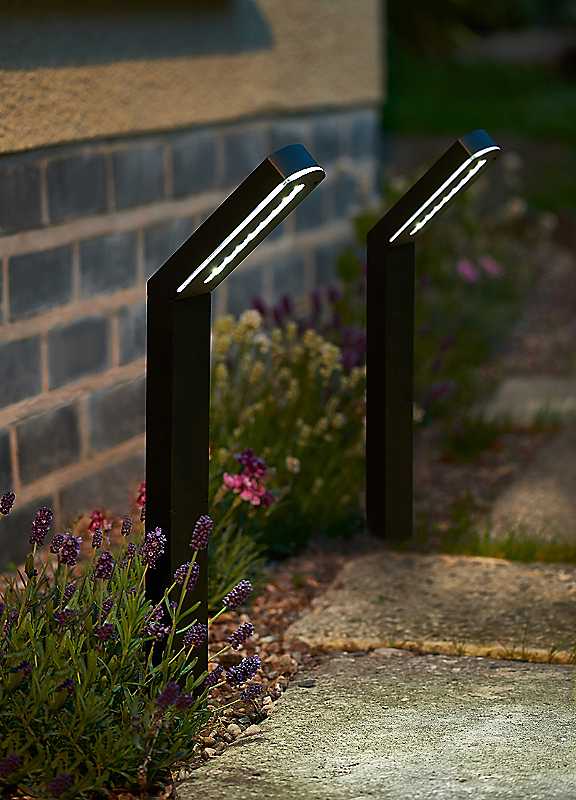 Set of 3 modern style stake lights. Dual colour - Warm or Cool White.Automatically illuminates during darkness. 50 Lumen Super Bright lighting.Set of 3Weight approx. 0.296 kgSolar: YesMains power: NoBattery includedBattery size: 3 x 18650 Li-ion RechargeableManufacturer's 1 year guaranteeWipe clean only, Avoid household cleaners & abrasivesPlastic & Electrical ComponentsHeight approx. 61 cmDimensions approx. 61 cm x 14 cm x 6 cm