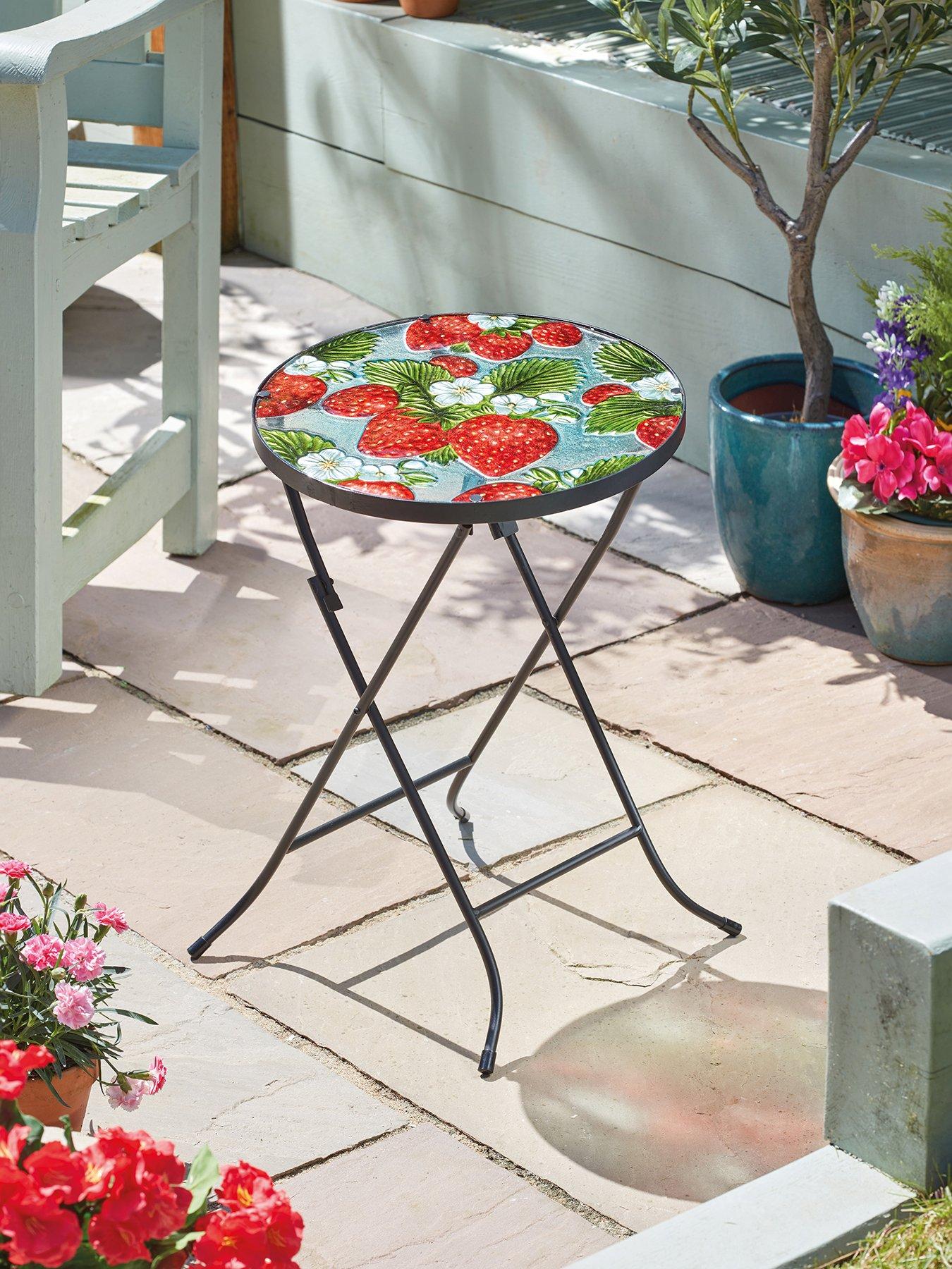Smart Garden Strawberry Table Bring Style And Colour To Any Home Or Garden With These Stunning Glass Tables That Come In A Range Of Complementary Designs! Beautiful Hand Painted Glass Table Top Suitable For Indoor And Outdoor Use Foldable Base For Easy Storage A Beautiful Boxed Gift For Any Occasion! Depth: .355 M Height: .5 M Width: .355 M