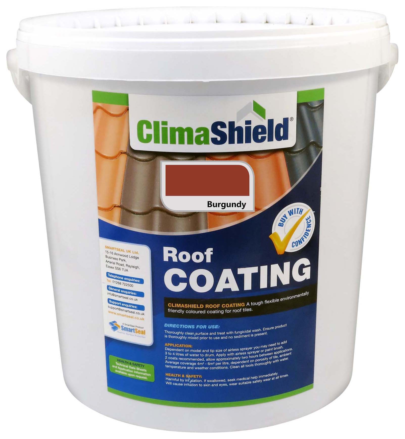 SmartSeal ClimaShield Burgundy Roof Coating - 20L - Climashield Roof Coating is used to renew the look of ageing, porous concrete roof tiles. Superior to a roof paint, it will transform the look of old concrete roof tiles and acts as a waterproof roof paint sealer as well as a coloured roof coating. Once applied, the waterproof roof paint or roof paint sealer will aesthetically transform the roof, leave it water resistant and protect it from the harmful effects of UV light. The roof coating will also allow 'flexing' and movement within the roof tile. Technically this is highly important because exposure to heat and cold will cause roof tiles to expand and contract. ***SUITABLE FOR CONCRETE ROOF TILES ONLY***