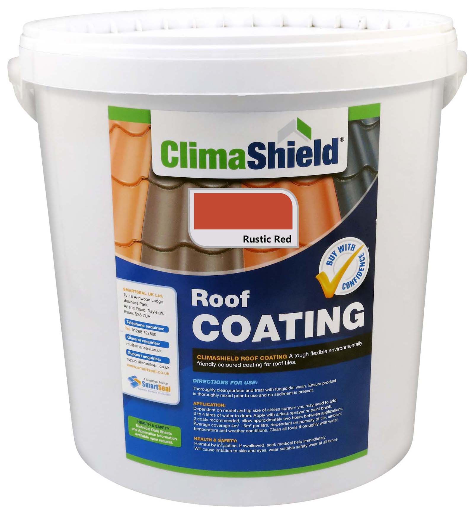 SmartSeal ClimaShield Rustic Red Roof Coating - 20L - Climashield Roof Coating is used to renew the look of ageing, porous concrete roof tiles. Superior to a roof paint, it will transform the look of old concrete roof tiles and acts as a waterproof roof paint sealer as well as a coloured roof coating. Once applied, the waterproof roof paint or roof paint sealer will aesthetically transform the roof, leave it water resistant and protect it from the harmful effects of UV light. The roof coating will also allow 'flexing' and movement within the roof tile. Technically this is highly important because exposure to heat and cold will cause roof tiles to expand and contract. ***SUITABLE FOR CONCRETE ROOF TILES ONLY***