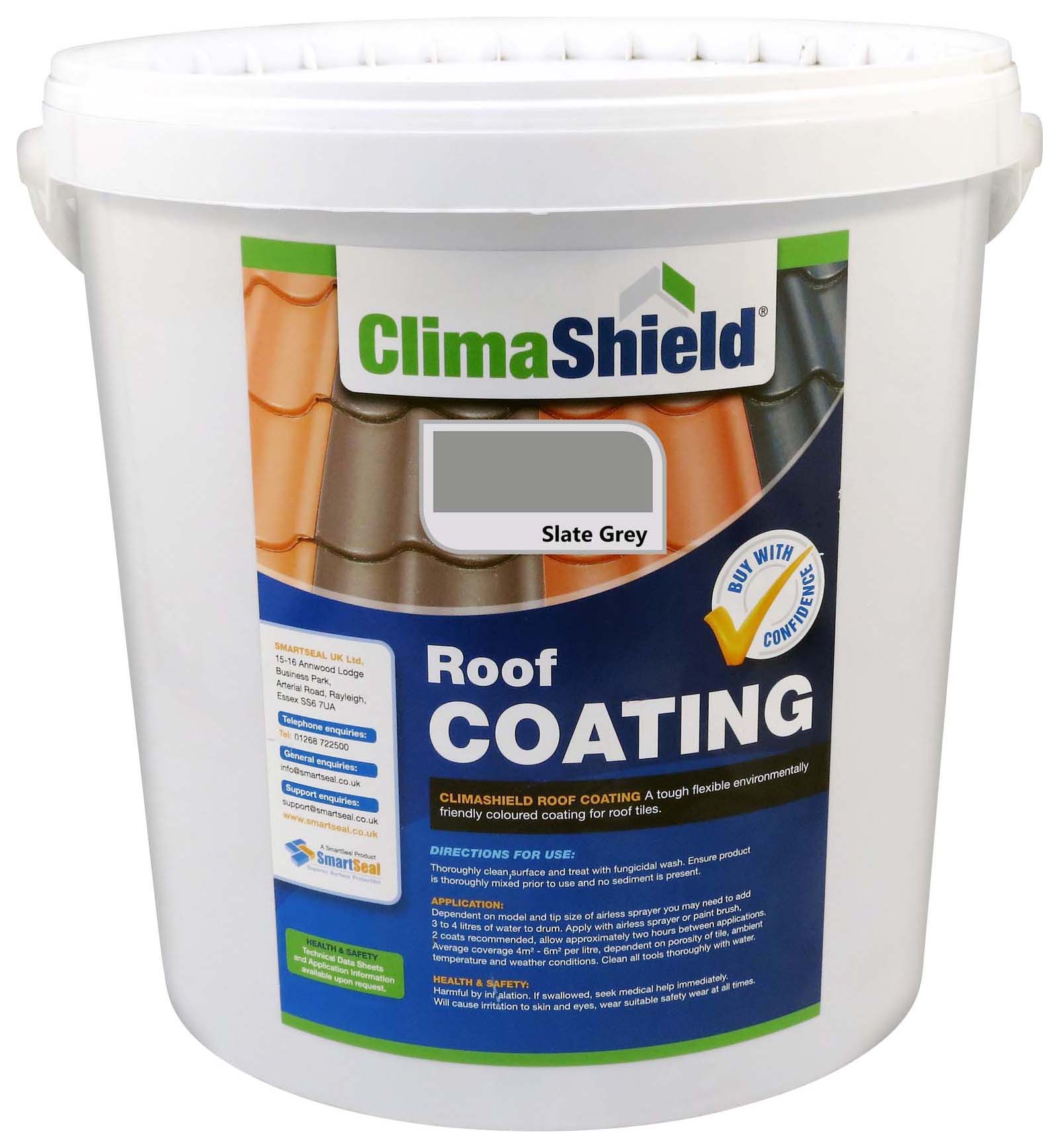 SmartSeal ClimaShield Slate Grey Roof Coating - 20L - Climashield Roof Coating is used to renew the look of ageing, porous concrete roof tiles. Superior to a roof paint, it will transform the look of old concrete roof tiles and acts as a waterproof roof paint sealer as well as a coloured roof coating. Once applied, the waterproof roof paint or roof paint sealer will aesthetically transform the roof, leave it water resistant and protect it from the harmful effects of UV light. The roof coating will also allow 'flexing' and movement within the roof tile. Technically this is highly important because exposure to heat and cold will cause roof tiles to expand and contract. ***SUITABLE FOR CONCRETE ROOF TILES ONLY***