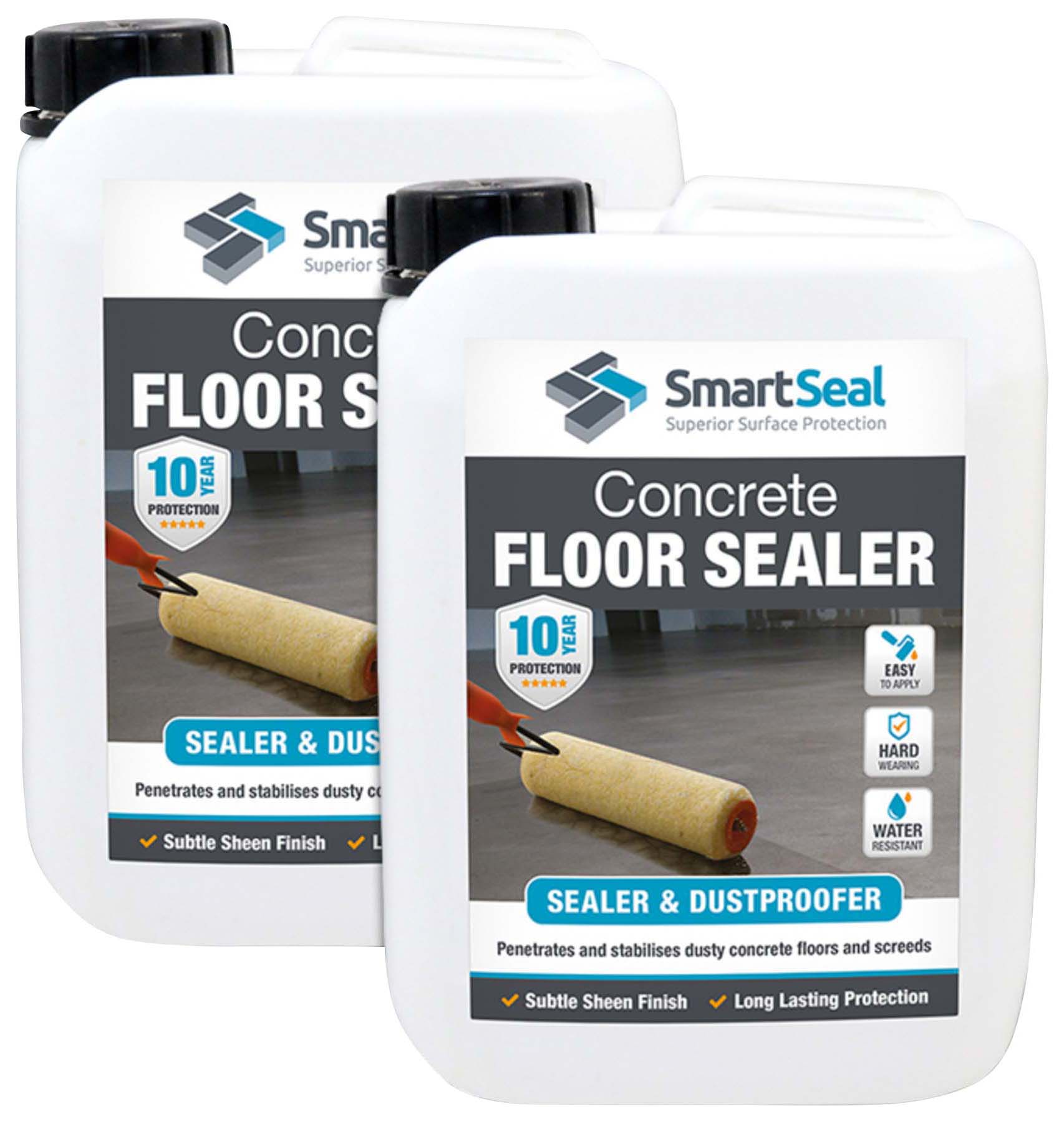 SmartSeal Concrete Floor Sealer - 10L - A ready to apply concrete floor sealer, garage floor sealer & concrete dustproofer that is specially formulated to penetrate and stabilise dusty concrete floors and screeds. It leaves a very subtle sheen finish once dry. Our concrete floor sealer is ideal for sealing dusty concrete floors in many internal situations such as kitchens, factories, warehouses, sheds, garages, workshops.