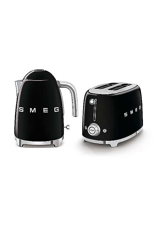 Smeg's iconic retro design offers a pop of colour and a premium enamelled finish, excl. handle. With a generous capacity of 1.7 litres, Smeg's KLF03 kettle makes up to 7 cups of tea or coffee. The spout has been specially designed with a balanced weight for an easy pour. The elegant soft opening lid not only looks beautiful but allows for easy filling and ensures that any condensation runs back into the kettle.Whether you're preparing breakfast before the school run, or a luxurious breakfast in bed, the Smeg TSF01 two slot toaster has got it covered. This two-slice toaster is perfect those who like to make a statement in the kitchen, but can also handle warming pastries, bagels, and toasting treats!Brand: SMEGELEGANT SOFT OPENING: The kettles lid is soft opening when the central button is pressed for easy fillingMULTI-FUNCTION CONTROL: Reheat to heat toast or slices of bread, Defrost to unfreeze frozen slices of bread or Bagel to brown just one side of the bread without toasting the otherEXCELLENT HEAT CONDUCTION: The kettles enamelled stainless steel surface ensures excellent heat conduction & there is an automatic switch off at 100°C for added piece of mindLARGE COMPARTMENTS: Self-centering racks in the compartments ensure even toasting of slices of bread, whatever size they may bePower: Kettle 3000WToaster 950WCable length - 1mKettle capacity - 1.7L (7cups)Kettle features - Auto switch off, integrated cord, anti-slip feet, 360 swivel base, limescale filterToaster features - x6 toasting levels, reheat function, defrost function, bagel functionKettle dimensions approx. H24.8 x W22.6 x D17.1 cmToaster dimensions approx. H19.8 x W31 x D19.5 cm