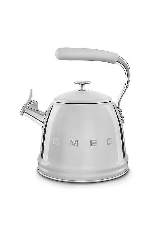 Bring a touch of style to your daily coffee or tea ritual. With its distinctive steam whistle, you'll always know when the water is ready, making everyday feel a little more special. With a generous capacity of 2.3 litres, Smeg's WKF01 kettle makes up to 9 cups of tea or coffee, making it ideal for families. This kettle features our famous and iconic retro design in a high quality, enamelled finish brings a sense of sophistication and modernity to the kitchen. With the removable lid, fixed single-tone whistle and cool-touch handle every feature is designed for ease of use.TIMELESS DESIGN WITH: Designed to complement any kitchen, this whistling kettle combines style and practicality. With a 2.3-litre capacity, it is ideal for preparing hot beverages for family gatherings or cosy eveningsEVERYDAY VERSATILITY: The kettle is compatible with all cooking surfaces, including gas, induction, electric, and ceramic hobs, providing exceptional versatilityCONVENIENT FILLING AND SAFE BOILING: The removable lid allows for quick and easy filling, while the fixed single-tone whistle informs you when the water has reached boiling point, ensuring both efficiency and safety. The practical spout cap ensure that you are pouring hot liquids safelySECURE GRIP: The kettle features an ergonomic, cool-touch handle with a non-slip silicone coating, ensuring a secure and comfortable grip, even when hotSMEG GUARANTEE: This product comes with a 2 year guarantee when you register for free with SMEG where you'll be able to return the appliance to be repaired or replaced if faultyStainless SteelDimensions approx. 20 x 20 x 15.2 cm