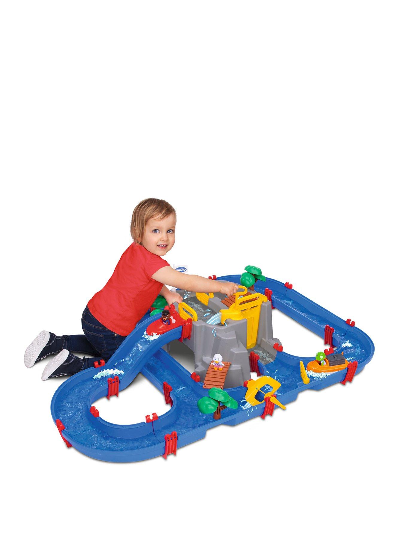 Expand their world withSmoby Aquaplay Mountain Lake. Meet Aquaplay's new adventure -the Mountain Lake! This large canal system will keep your children occupied for hours with the brand new play feature; the big mountain with a lake. It also contains a speedboat, a container boat with container and the 3animal figures; Lotta the Duck, Nils the Frog and Bo the Bear.Together with the figures, children can explore the mountain's mysterious cave, climb the steep cliffs, take the speedboat down the hilarious waterfall or search for treasures in the canals! Kids aged 3+ will love setting the water into motion by paddling the water wheel and pass through the enormous lock system. They canregulate the water level by using the pump and opening the lock gates, making thisa creative and playful way of educating how water moves, lifts and climbs! As if that wasn't enough, all AquaPlay sets are designed to work together and can easily be extended by other AquaPlay sets. The Megabridge set can be found via code QW7JM and the AquaPlay Lock Box can be found by searching code KFT9L! Depth: 1280 MM Height: 520 MM Width: 900 MM Age Range: 3+ Assembly: Self Assembly Warning Message: Warning: Not suitable for children under 3 years Big mountain with a lake to explore Take a speedboat down the waterfall Regulate water level using pump and lock gates