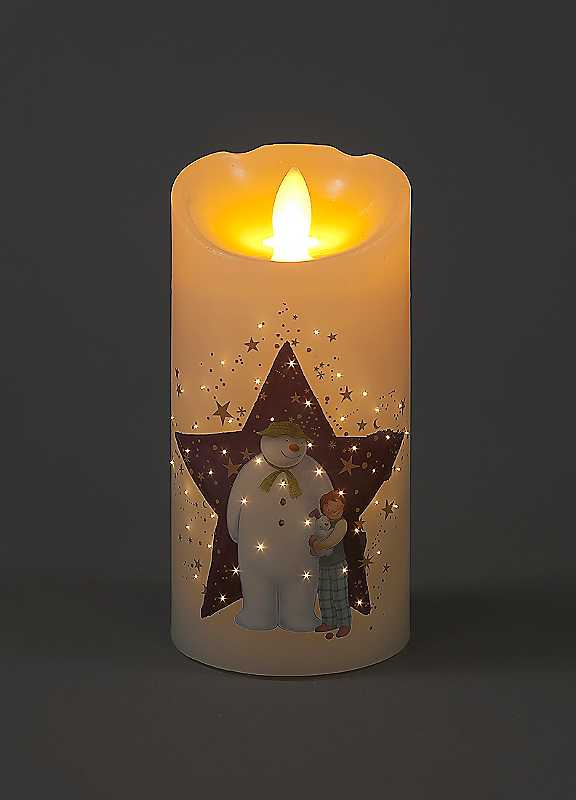 This 15 cm battery operated candle features the famous Snowman and Snowdog from 'The Snowman'. The candle can easily be turned on and off to give the twinkle effect. Simply place on your mantle, windowsill or as part of your table decorations.Brand: SnowtimeSuitable for indoor use onlyBattery operated - requires 3 x AA batteries (not included)Size approx. 15 x 7.5 cmPlease Note: The images of the products on our website are for illustrative purposes. We endeavour to display as accurately as possible the colours of our products on our website, however, as different computers and mobile devices display colour tones differently we cannot guarantee the complete accuracy of the pictures or photographs that are shown.