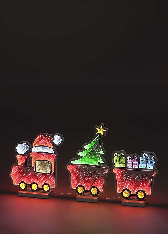This 70cm Infinity Train with 2 carriages brings a vibrant, multi-coloured display to your indoor holiday decor. Perfect for adding a festive touch, the train features a sturdy wooden base for stability. Ideal for creating a whimsical and colourful atmosphere, this charming piece is sure to delight throughout the holiday season.Suitable for both indoor and outdoor useMains poweredLength approx. 70 cm