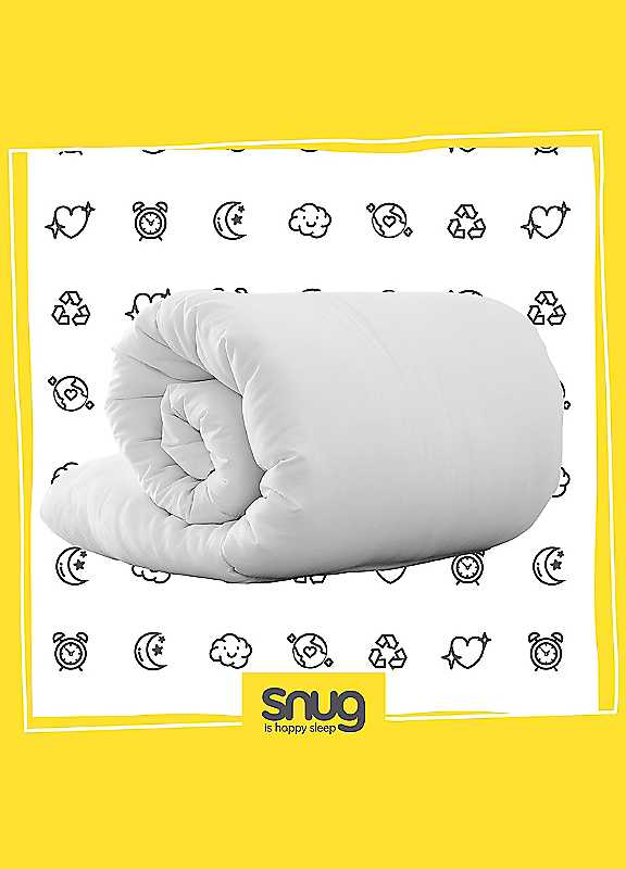 Kick back and relax with the Snug deeply dreamy duvet, helping you to sleep happy. The duvet is covered in soft microfibre and filled with squidgy fibres that will leave you longing for your bed. The 10.5 tog rating is ideal for every season so you can wrap the duvet round you, whatever the weather.We've got you; your bedding is filled with recycled materials giving our lovely planet a helping hand. We care so you can be carefree, the squidgy fibres were once plastic bottles that have experienced a wonderful makeover. Our packaging is made from 30% recycled materials and can be fully recycled.Here at Snug, we believe that everyone deserves a happy sleep! Made in UK HAPPY SLEEP: Made especially for sleepyheads, the Snug Deeply Dreamy duvet offers oodles of comfort for a night full of sweet dreams 10.5 TOG: The perfect nighttime companion all year round to keep you at just the right temperature for a truly great snooze fest ECO FRIENDLY: The Just Right duvet is filled with 100% recycled materials & has helped to prevent up to 97 plastic bottles from going into the oceans or landfill RECYCLED PACKAGING: Snug packaging is made from 30% recycled materials & better still, its 100% recyclable; just pass it on to your local supermarket or recycling point VEGAN FRIENDLY & HYPOALLERGENIC: Cruelty-free & contains no animal derivatives Free from harmful chemicals & materials that may cause pesky allergies or skin irritation MACHINE WASHABLE: Snug products are made right here in the UK & are fully machine washable & this duvet comes complete with a no-worries 5-year manufacturer's guarantee Machine washable Tumble dry low 100% Microfibre Filling: Hollowfibre