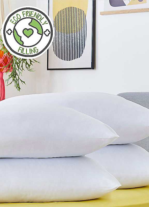 Kick back and relax with the deeply dreamy pillows, helping you to sleep happily every night. Each pillow is covered in soft microfibre and filled with squidgy fibres that will leave you longing for your bed.Deeply dreamy pillows have been designed to be, well, just right for everyone! They are medium-firm, so a great all-rounder for all sleeping positions. Use one pillow for soft-medium comfort or double it up and use two pillows if you prefer more support.We've got you; your bedding is filled with recycled materials giving our lovely planet a helping hand. We care so you can be carefree, the squidgy fibres were once plastic bottles that have enjoyed a wonderful makeover. Our packaging is made from 30% recycled materials and can be fully recycled.Here at Snug, we believe that everyone deserves a happy sleep! Made in UK HAPPY SLEEP: Made especially for sleepyheads, Deeply Dreamy pillows offer oodles of comfort for a night full of sweet dreams & pack contains 2 pillows ECO FRIENDLY: Deeply Dreamy pillows are filled with 100% recycled content & each pillow pair has helped to prevent 26 plastic bottles from going into the oceans or landfill RECYCLED PACKAGING: Snug packaging is made from 30% recycled materials, & better still, its 100% recyclable; just pass it on to your local supermarket or recycling point VEGAN FRIENDLY: Cruelty-free & contains no animal derivatives HYPOALLERGENIC: Free from harmful chemicals & materials that may cause pesky allergies or skin irritation MACHINE WASHABLE: Snug products are made right here in the UK & are fully machine washable & these pillows come with a handy 2-year manufacturer's guarantee Pack of 4 Machine washable Tumble dry low 100% Microfibre Filling: Hollowfibre