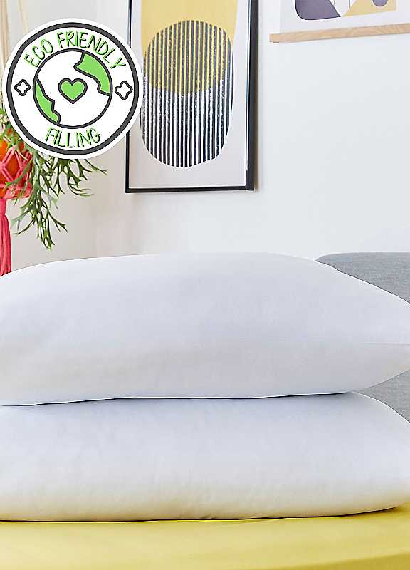 Kick back and relax with the deeply dreamy pillow pair, helping you to sleep happily every night. Each pillow is covered in soft microfibre and filled with squidgy fibres that will leave you longing for your bed.Deeply dreamy pillows have been designed to be, well, just right for everyone! They are medium-firm, so a great all-rounder for all sleeping positions. Use one pillow for soft-medium comfort or double it up and use two pillows if you prefer more support.We've got you; your bedding is filled with recycled materials giving our lovely planet a helping hand. We care so you can be carefree, the squidgy fibres were once plastic bottles that have enjoyed a wonderful makeover. Our packaging is made from 30% recycled materials and can be fully recycled.Here at Snug, we believe that everyone deserves a happy sleep! Made in UK HAPPY SLEEP: Made especially for sleepyheads, Deeply Dreamy pillows offer oodles of comfort for a night full of sweet dreams & pack contains 2 pillows ECO FRIENDLY: Deeply Dreamy pillows are filled with 100% recycled content & each pillow pair has helped to prevent 26 plastic bottles from going into the oceans or landfill RECYCLED PACKAGING: Snug packaging is made from 30% recycled materials, & better still, its 100% recyclable; just pass it on to your local supermarket or recycling point VEGAN FRIENDLY: Cruelty-free & contains no animal derivatives HYPOALLERGENIC: Free from harmful chemicals & materials that may cause pesky allergies or skin irritation MACHINE WASHABLE: Snug products are made right here in the UK & are fully machine washable & these pillows come with a handy 2-year manufacturer's guarantee Machine washable Tumble dry low 100% Microfibre Filling: Hollowfibre