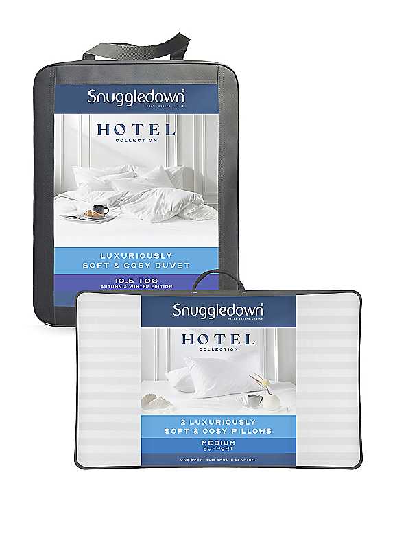 Luxuriously soft and lofty with a natural drape, this Hotel Collection Luxuriously Soft & Cosy 10.5 Tog All Year Round Single Duvet from Snuggledown is wonderfully light. Made in the UK to exacting standards, this premium duvet combines quality and functionality so that you can enjoy an unsurpassed night's sleep whilst wrapped in hotel quality luxury. The duvet is filled with a soft and cosy hollowfibre which beautifully balances warmth and weight, and being a mid-weight 10.5 tog duvet, it's a great option for use all year round. The Snuggledown Hotel Collection Luxuriously Soft & Cosy Pillow Pair offers hotel quality luxury in the comfort of your own home. The wonderfully soft touch embossed microfibre covers work in harmony with the silky soft hollowfibre filling giving you that indulgent hotel luxury feeling night after night. Having a medium support level, these Luxuriously Hotel Soft & Cosy pillows from Snuggledown are a great choice for back sleepers, or for those who prefer versatile, mid-depth pillows. Cover: 100% Microfibre Filling: 100% Hollowfibre Machine washable Tumble dry