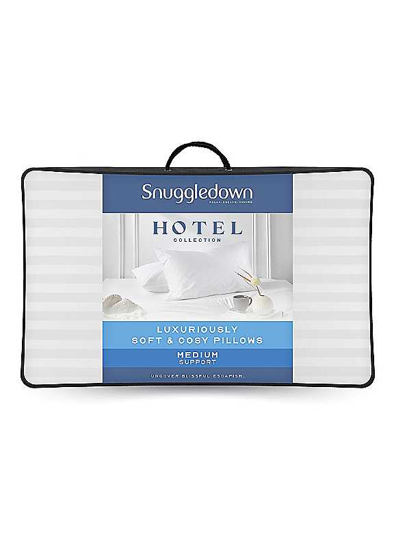This luxurious hotel pillow from Snuggledown offers hotel quality luxury in the comfort of your own home. The wonderfully soft touch embossed microfibre cover works in harmony with silky soft hollowfibre filling giving you that indulgent hotel luxury feeling night after night. Offering unsurpassed comfort, you can also sleep easy knowing that there's nothing in this pillow that could cause allergic reactions, as it's naturally hypoallergenic. Having a medium support level, this Snuggledown luxurious hotel pillow is a great choice for back sleepers, or for those who prefer a versatile, mid-depth pillow.Medium supportHotel quality luxuryPack of 2Machine washable Tumble dryCover & Filling: 100% Polyester
