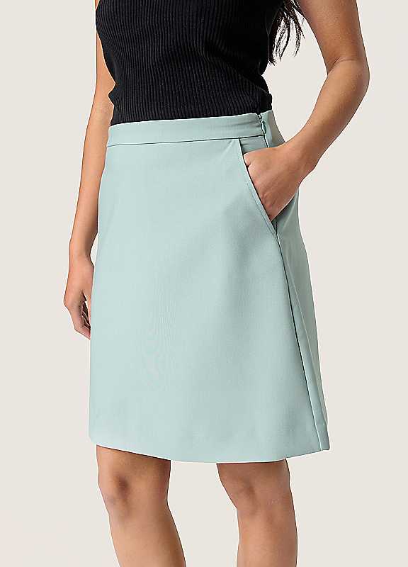 The SLCorinne skirt is a simple and versatile style, that you can wear with any outfit. The skirt is high-waisted and has a straight waistband with an invisible zip at the side seam. It is cut at the mid-thigh and it has a flattering A-line silhouette, and it has practical side pockets.Machine Washable at 30°C;Do Not Use Bleach78% Polyester, 18% Viscose, 4% Elastane