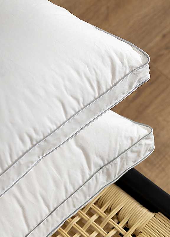 A supportive yet soft pillow that's perfect for side sleepers. We've filled these pillows with luxuriously soft goose down and a supportive inner chamber made of goose feather for excellent neck support as you sleep.Medium firmness pillow with a supportive inner chamber - suitable for side and back sleepersPack of 2Wash at 30°C, every 6-12 monthsTumble-dry until completely dryWe recommend a professional wash and dry for pillowsCasing: 100% CottonOuter Chamber: 80% Goose Down, 20% Goose FeatherInner Chamber: 95% Goose Feather, 5% Goose DownSize approx. 50 x 75 cm