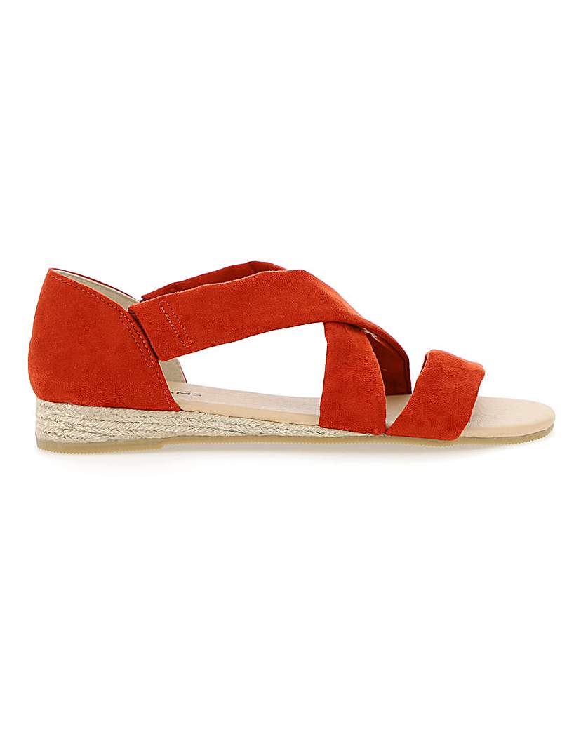 Get the look for less with these great value sandals. The soft crossover straps have elasticated panels for a comfortable fit across the foot. Featuring a low wedge espadrille-style sole for a true holiday look. Gently padded underfoot for comfort from day into night.