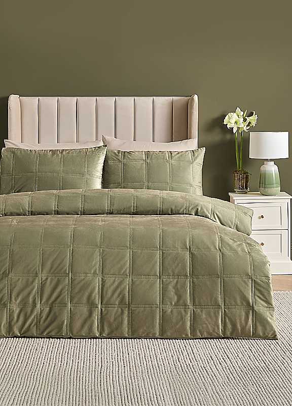 Feel fabulous and snuggle in style with this sumptuously soft velvet bedding set from soiree. Bold colour and subtle squares work perfectly to create this divinely decadent duvet covers.Includes two pillowcases.Machine washable at 30°CCool tumble dryNon iron100% Polyester