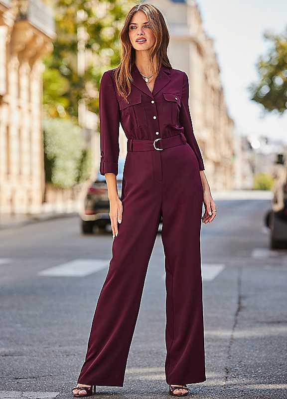 The ultimate outfit-in-one, framed by a stylish collar neckline, elevated with on-trend utility styling and luxe silver hardware, comfy wide legs for easy movement, cinched at the waist with a d-ring belt, accessorise it to suit the occasion.Machine washable94% Polyester, 6% ElastaneShort inside leg approx. 29 insRegular inside leg approx. 31 insLong inside leg approx. 33 ins | jumpsuit with pockets, long leg jumpsuit, wide leg jumpsuit, short leg jumpsuit