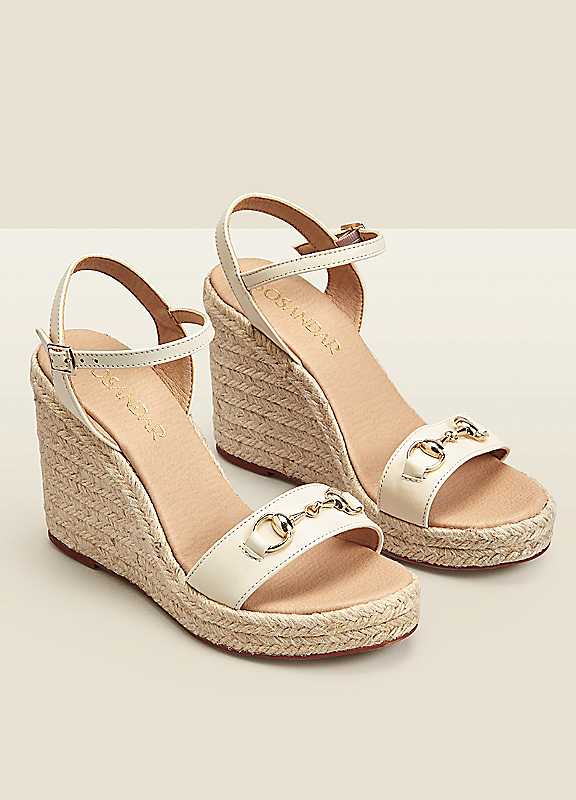 Sosandar Carina Ivory Leather Snaffle Trim Wedge Espadrille Sandals
