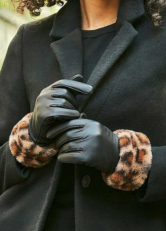 Stay stylish and cosy with our Leopard Faux Fur Leather Gloves. Made with high-quality faux fur and leather, these gloves are perfect for any cold weather outing. The trendy leopard print adds a touch of sophistication to your outfit, while the soft lining provides warmth and comfort. With a sleek design and durable construction, these gloves are a must-have for any fashion-forward individual. Elevate your winter wardrobe with these versatile and chic gloves. Faux Fur Leather