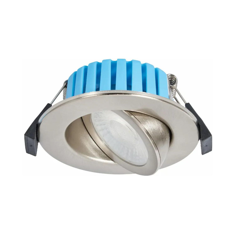 * IP65 * 7W 700lm * 70-75mm cut-out * 3 colour temperature options * Dimmable with leading edge or trailing edge dimmer * Fire-rated to 30, 60 & 90 mins * Instructions, fixtures and fittings included Your room, illuminated your way – the Spa Eden fire-rated downlight offers the choice of warm, cool or daylight white light alongside dimmable and tiltable options to brighten up any space or feature. This ceiling light requires a 70-75mm cut-out for a flush fit, finished off with a satin nickel bezel to bring out the best in any interior. Featuring fast-fit connectors for ease of installation, and an IP65 rating for protection – perfect as a bathroom light. * 7W 700lm – efficient light output of 100lm/W * Three CCT options – warm, cool or daylight white light * Dimmable – with leading edge or trailing edge dimmer * 90deg tilt – angled light exactly where you need it * Flush ceiling fit – requires a cut-out of 70-75mm * IP65 rating – suitable for bathroom installation * Fire rated – rated to 30, 60 and 90 minutes * Satin nickel finish – suits almost any interior * Easy to install – fixtures and fittings included | Spa Lighting Spa Eden Fire Rated Adjustable Dimmable Downlight IP65 7W 700lm 3CCT Satin in Nickel