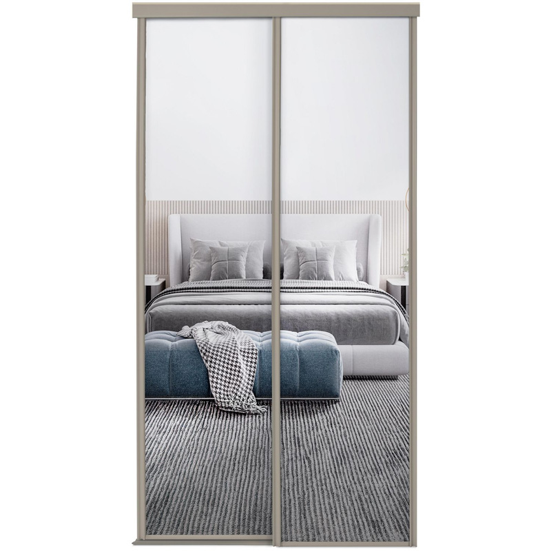 Spacepro 2 Door Sliding Wardrobe Kit Framed Mirror Door Door Kit (610mm) in Pebble
