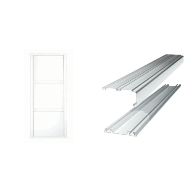 Spacepro 3 Panel Shaker White Frame Door 610mm + Spacepro Sliding Door Trackset White 2 7 3 6m