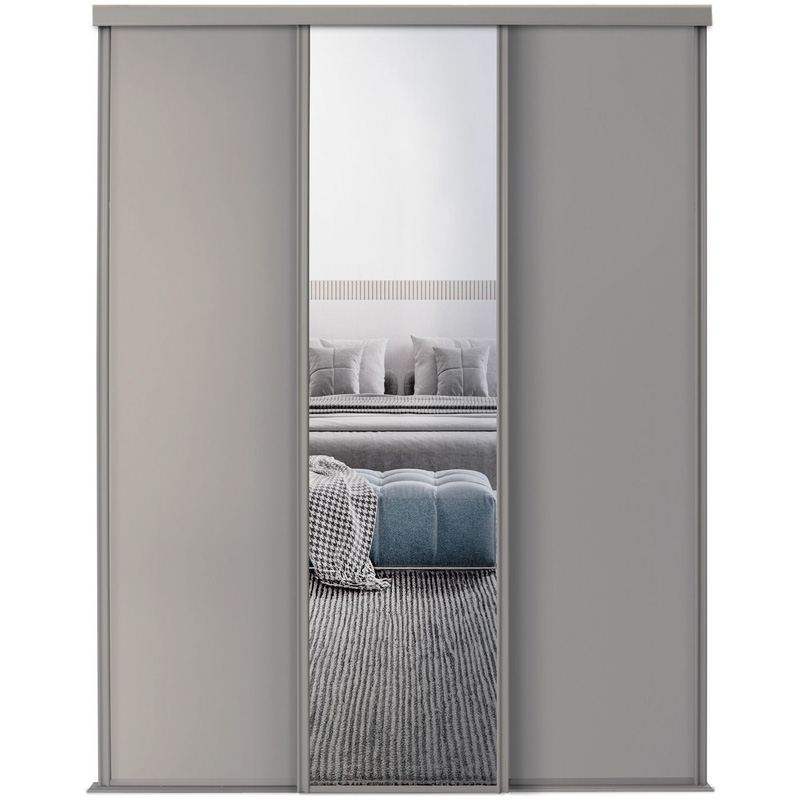 These sliding doors maximise storage space in your home. * Available in a choice of sizes – including 610mm, 762mm, and 914mm widths * Available in a choice of configurations – including 3 and 4 door kits | Spacepro Classic 3 Door Sliding Wardrobe Kit Framed Mirror Door Kit (914mm) in Pebble