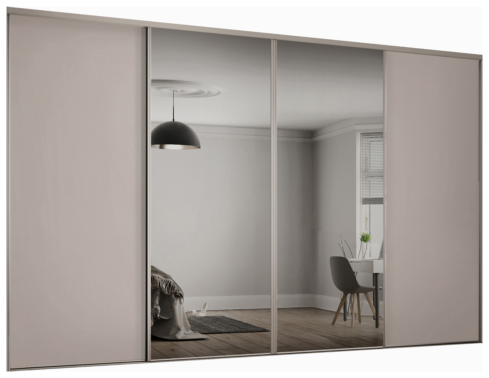 Spacepro Heritage Cashmere Framed 4 Wardrobe Door Kit - 2978mm (W) - This Spacepro Heritage sliding door kit contains 4 cashmere-framed mirror and panel doors to create a striking, contemporary wardrobe. Easy to install, this kit can be fitted in just a couple of hours.