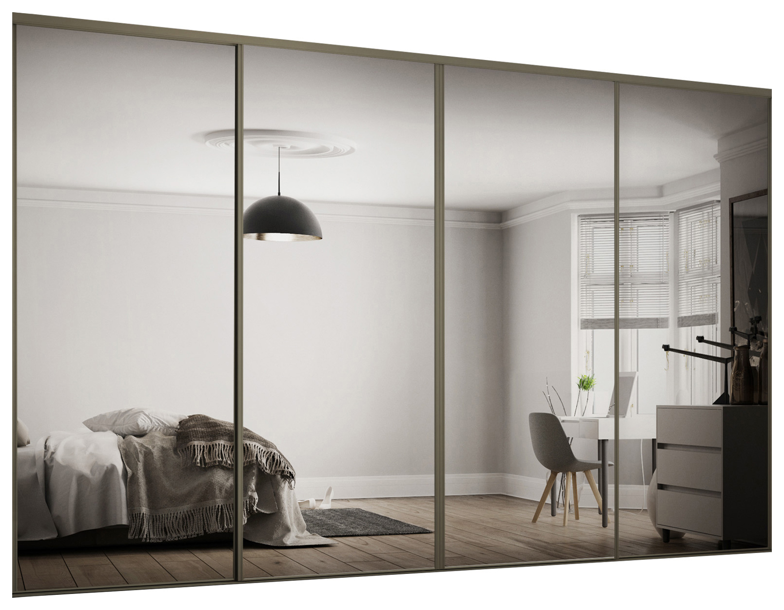 Spacepro Heritage Nickel Framed 4 Wardrobe Door Kit - 3023mm (W) - This Spacepro Heritage sliding door kit contains 4 nickel-framed mirror doors to create a striking, contemporary wardrobe. Easy to install, this kit can be fitted in just a couple of hours.