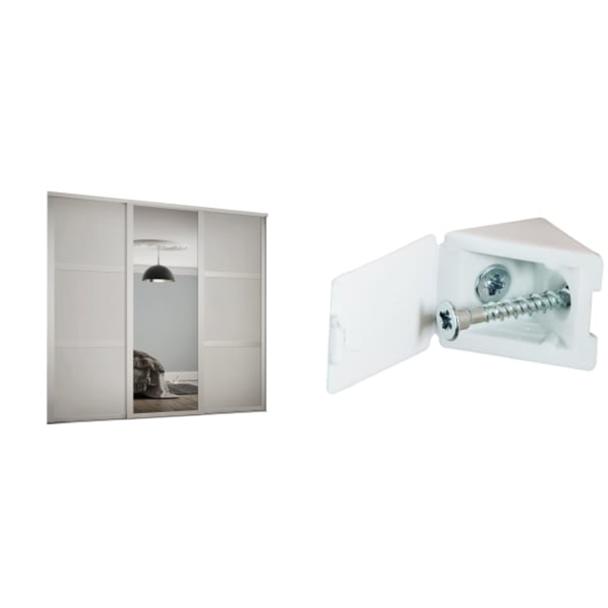 Spacepro Shaker 3 Wardrobe Door Kit White Framed 1680mm W + Spacepro Fixing Blocks Pack of 10