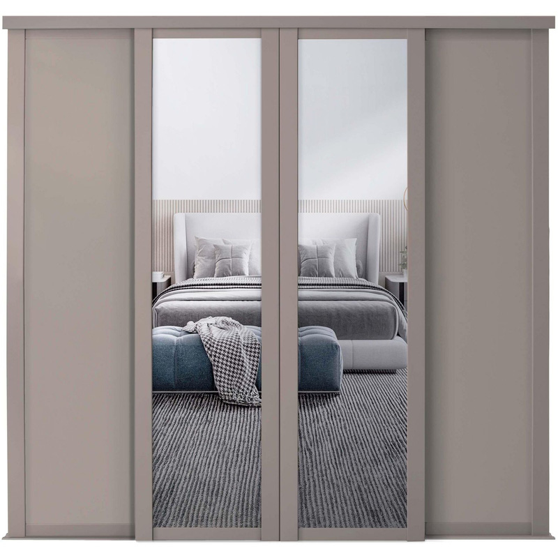 Spacepro Shaker 4 Door Sliding Wardrobe Kit Framed 2 Mirror Door Door Kit (914mm) in Pebble
